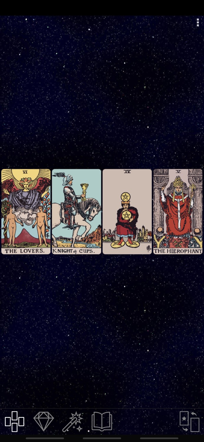 ถามไพ่ว่า เราจะสอบติดป.โท ที่ ….. มั้ย จับได้ไพ่ 1. 6 of swords 2. Death 3. 9 of cups 4. The chariot (แล้วถ้าจับใบเดียวได้ใบนี้ แปลว่าได้มั้ยคะ) เราอ่านไพ่เองยังไม่ค่ ยเข้าใจความหมาย เลยจับไพ่เ