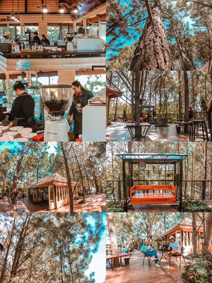 บรรยกาศโดยรอบมีต้นสนล้อมรอบและมีมุม ห้อยขาจิบกาแฟ มองวิวธรรมชาติ มีมุมถ่ายรูปสวยๆ กาเเฟอร่อยราคาไม่เเพงเท่าไร่ บรรยากาศดี แอดเเนะนำให้มา