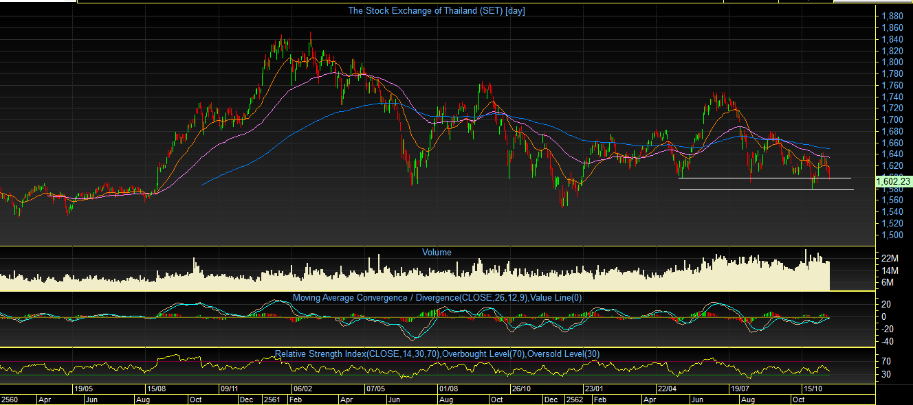 จนทำให้กลับลงมาทดสอบแนวรับจิตวิทยา ณ ระดับ 1600 จุด อีกครั้ง ซึ่งต้องมาดูกันว่า ดัชนีจะสามารถฟื้นตัวขึ้นไปได้อีกครั้งหรือไม่