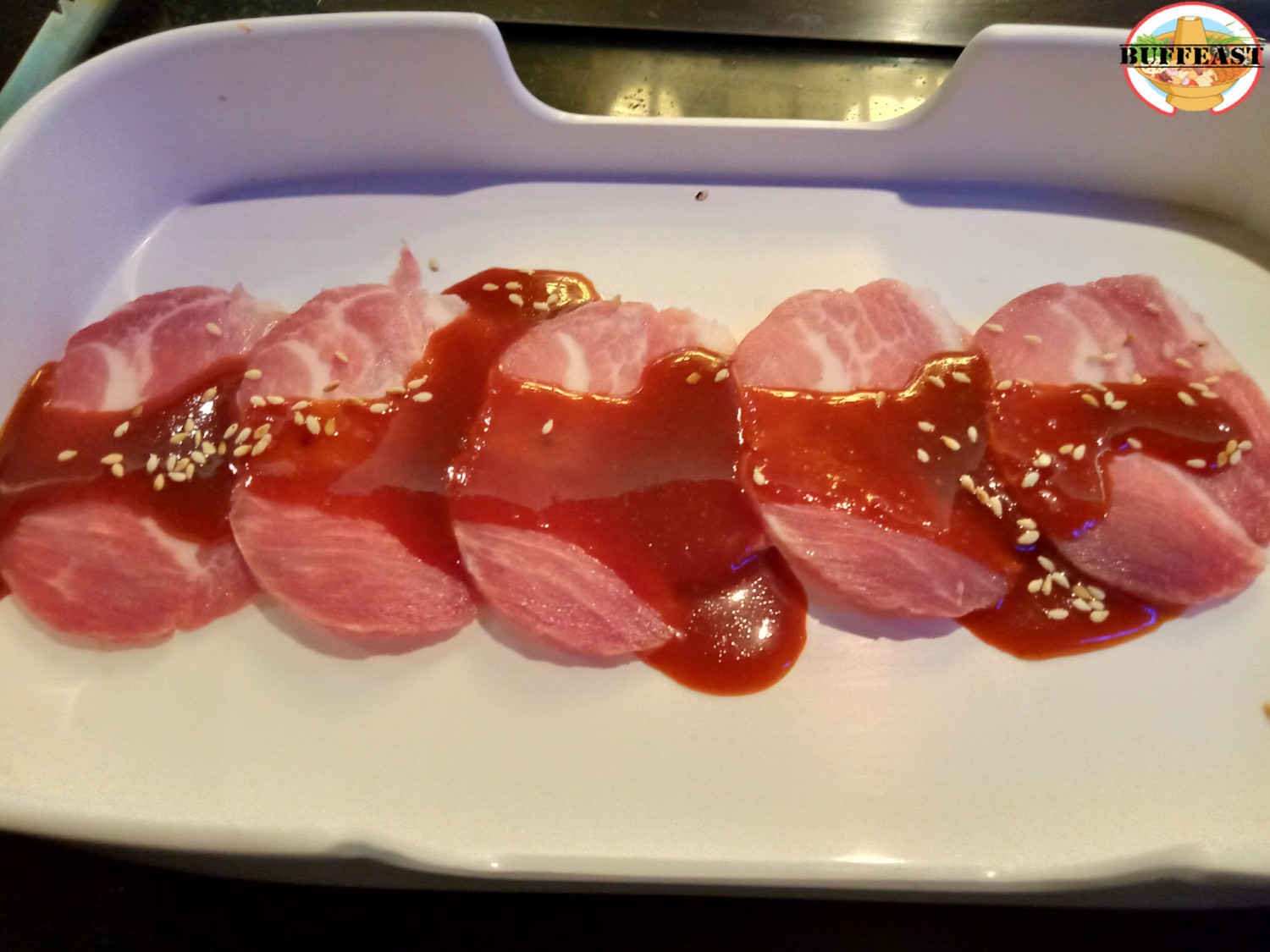 หมูหมักซอสเท็นชินโอ เป็นเนื้อหมู(ไม่ทราบว่าส่วนไหน)หมักด้วยซอสสูตรเฉพาะของร้าน เนื้อหมูนุ่มหมักมากลมกล่อมใช้ได้