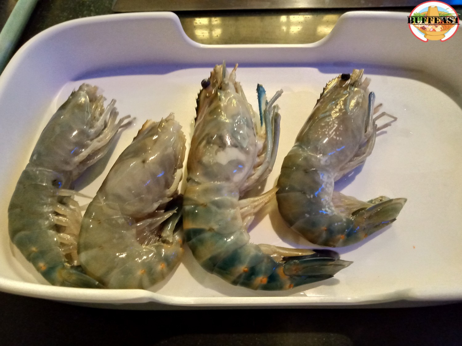 กุ้งก้ามกราม เนื้อนิ่มจนเกือบเละ แต่พอแกะเป็นชิ้นได้ เนื้อหวานระดับหนึ่ง หัวมีมันแต่รสขมติดลิ้น