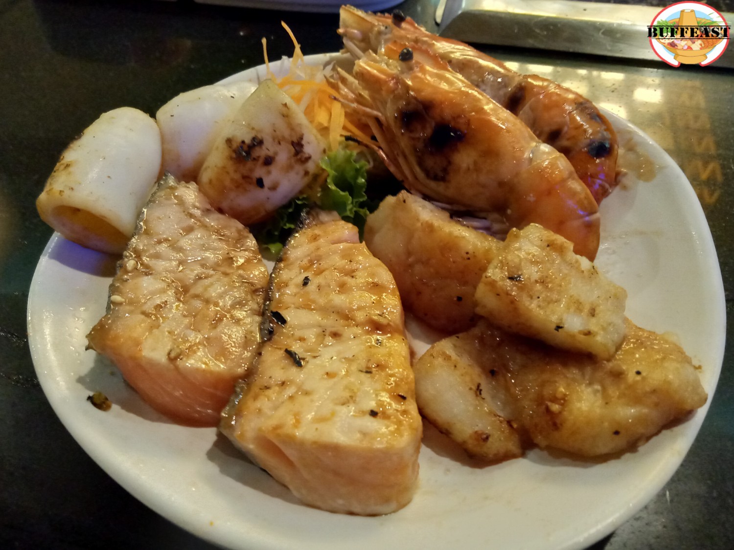เนื้อย่างรสชาติอร่อยตามมาตรฐาน พวกเนื้อติดมันหอมหวานแต่ไม่ถึงกับเลิศมาก หลายชิ้นค่อนข้างแห้งไม่ฉ่ำเท่าที่ควร ส่วนซีฟู้ดและของกินเล่น