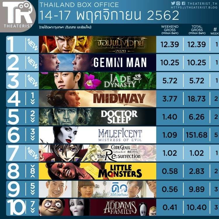 เปิดรายได้10อันดับหนังที่ทำรายได้ประจำสุดสัปดาห์ที่ 14-17 พฤศจิกายน💥💥