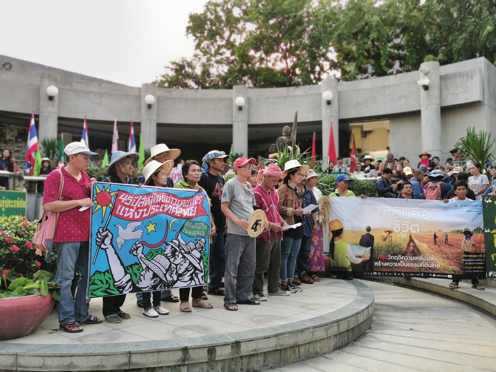 เนื่องในการจัดงานมหกรรรมที่ดินคือชีวิต ครั้งที่ 2 ที่ขบวนการประชาชนเพื่อสังคมที่เป็นธรรม ร่วมกับเครือข่ายภาคีองค์กรต่าง ๆ หลายภาคส่วน ขอเรียกร้องให้รัฐบาลได้ดำเนินการตรวจสอบกรณีสถานะของที่ดินแปลงดังกล่าวและคุณสมบัติของบุคคลที่ได้รับเอกสารสิทธิ์ว่าชอบด้วยกฎหมายหรือไม่ ทั้งนี้ หากได้มามิชอบให้ดำเนินการตามกฎหมายอย่างเคร่งครัด เพื่อป้องกันมิให้ที่ดินอันควรเป็นของเกษตรกรตกอยู่ในมือของนายทุนและผู้มีอิทธิพล และเราขอเรียกร้องต่อรัฐสภา สมาชิกสภาผู้แทนราษฎร ทั้งฝ่ายรัฐบาลและฝ่ายค้าน ได้ให้ความสำคัญกับข้อเสนอของภาคประชาชนในด้านกระจายการถือครองที่ดิน การจัดการที่ดินโดยสิทธิชุมชน โดยการนำข้อเสนอภาคประชาชนไปพิจารณาทั้ง พ.ร.บ.ภาษีที่ดินอัตราก้าวหน้า พ.ร.บ.ธนาคารที่ดิน พ.ร.บ.การจัดการทรัพยากรที่ดินโดยสิทธิชุมชน ซึ่งนโยบายทั้ง 3 นี้จะเป็นเงื่อนไขในการกระจายการถือครองที่ดินได้อย่างเป็นธรรม โดยเราจะร่วมกับเครือข่ายภาคีต่าง ๆ ในการติดตามและผลักดัน ให้นโยบายดังกล่าวได้รับปฏิบัติในที่สุด