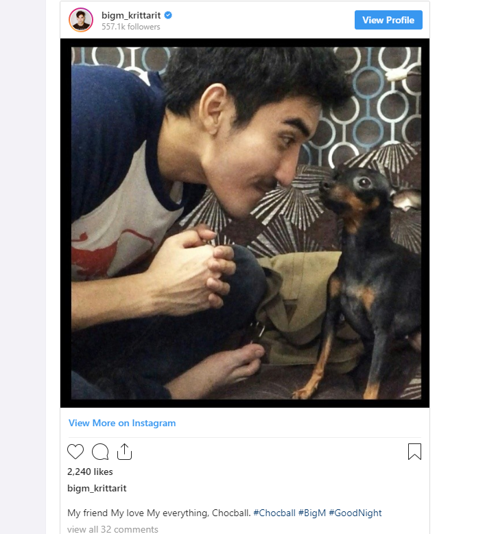 มีทั้งความหล่อและความขี้เล่น พร้อมขโมยหัวใจตลอดเวลา สำหรับ บิ๊กเอ็ม กฤตฤทธิ์ บุตรพรม พระเอกรูปหล่อกล้ามโตมาดเข้ม ที่แม้เราจะเห็นเค้าออกลีลาบู๊ในละครอยู่บ่อยๆ แต่ใครจะรู้ว่านอกจอเนี่ย หนุ่ม บิ๊กเอ็ม กฤตฤทธิ์ จะมีคู่หูสุดซี้ เป็นน้องหมาสี่ขาตัวจิ๋วอย่าง น้องช็อกบอล สาวน้อยแสนซนที่เลเวลความสนิทและเคมีของทั้งคู่ตอนอยู่ด้วยกันเนี่ย น่ารักจนต้องขอยืนยันคำเดิมเลยล่ะค่ะว่า ผู้ชายรักสัตว์เนี่ยเป็นอะไรที่ละมุนจริงๆ