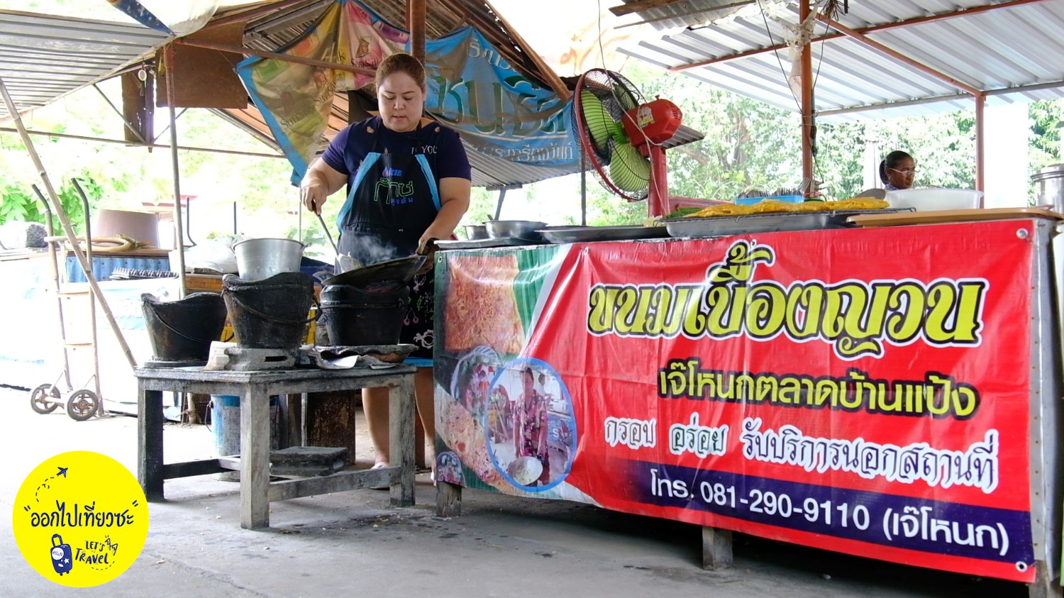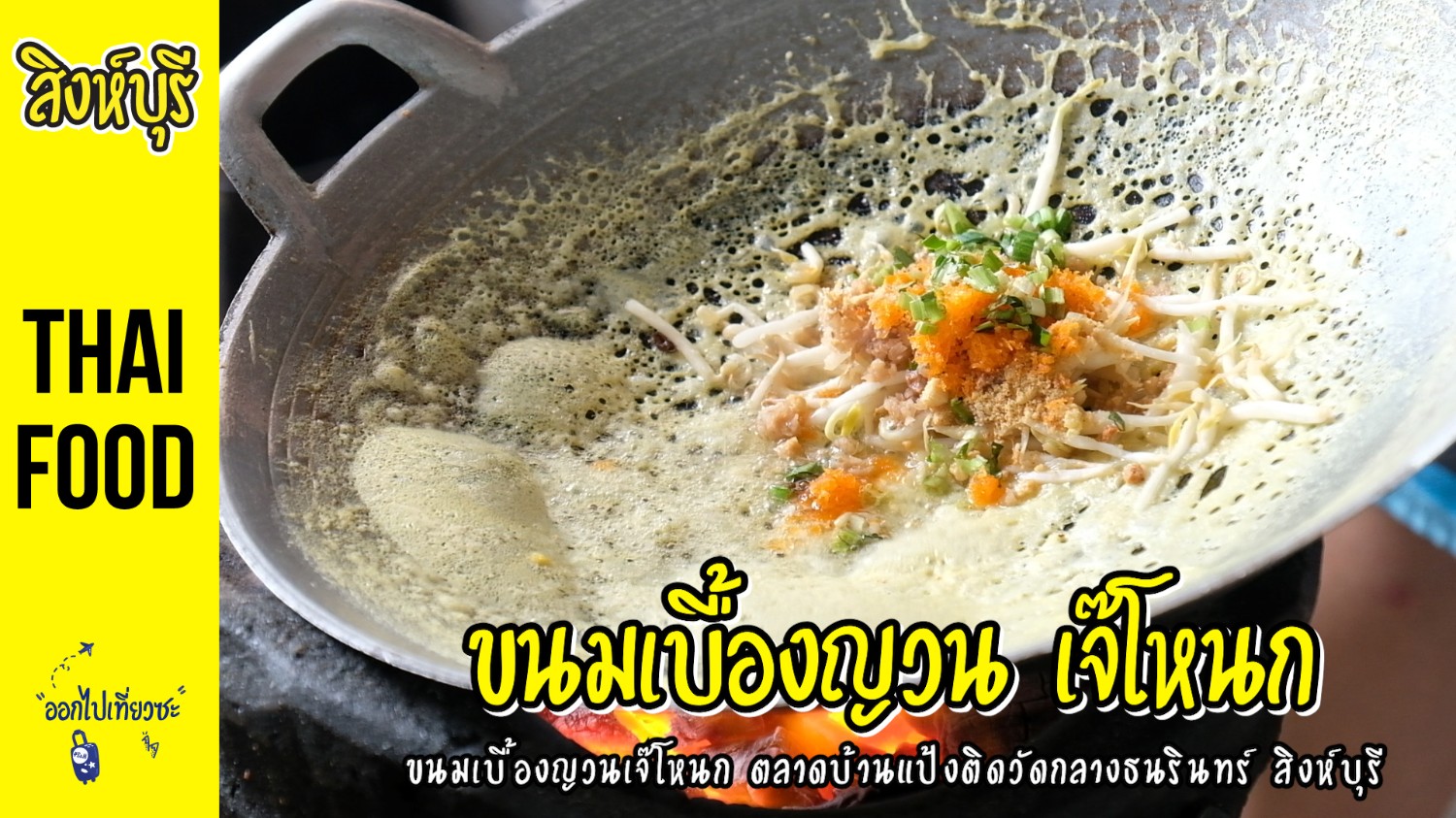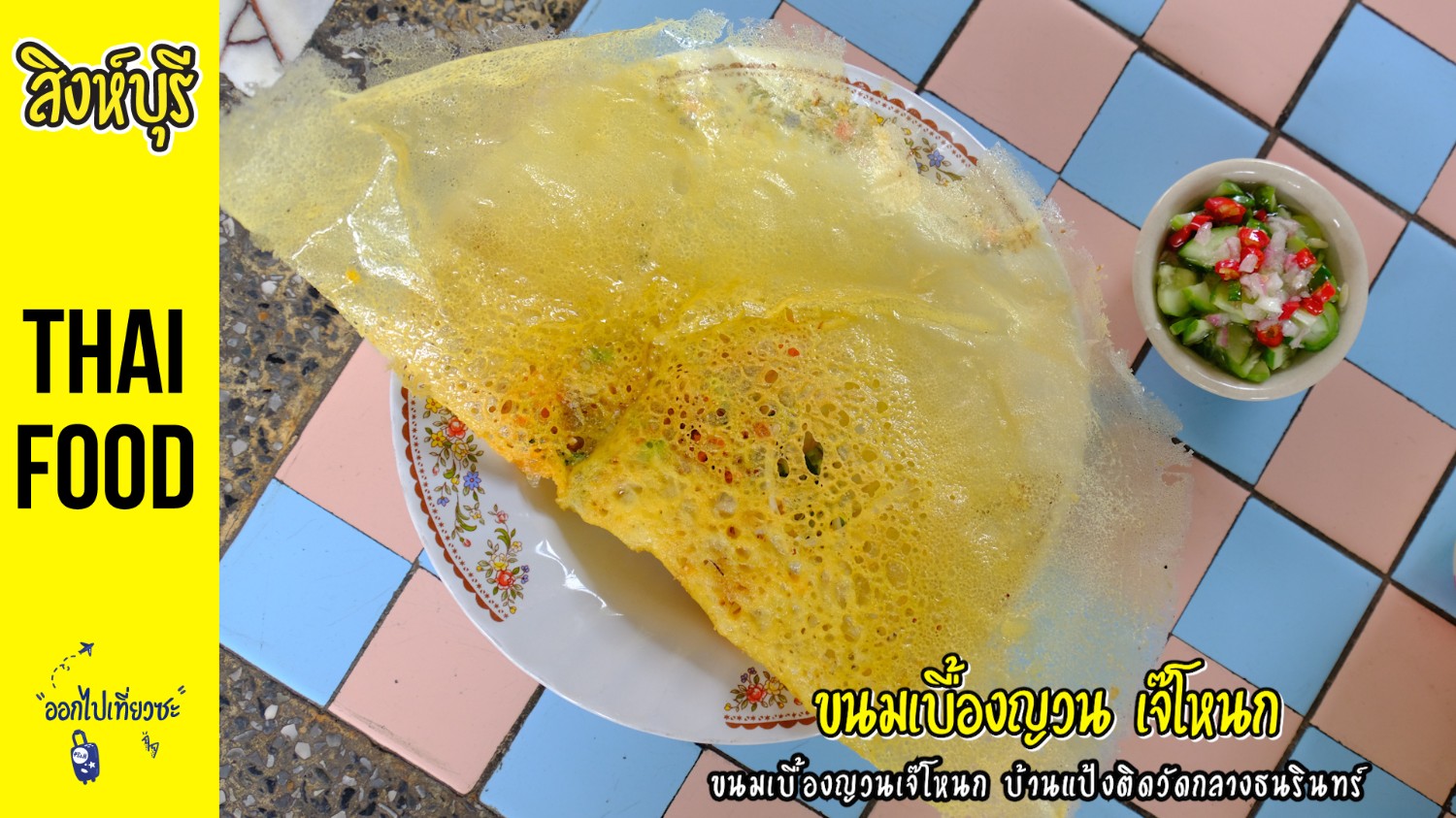 @ขนมเบื้องญวนเจ๊โหนก ตลาดบ้านแป้ง สิงห์บุรี ร้านอยู่บริเวณวัดกลางธนรินทร์