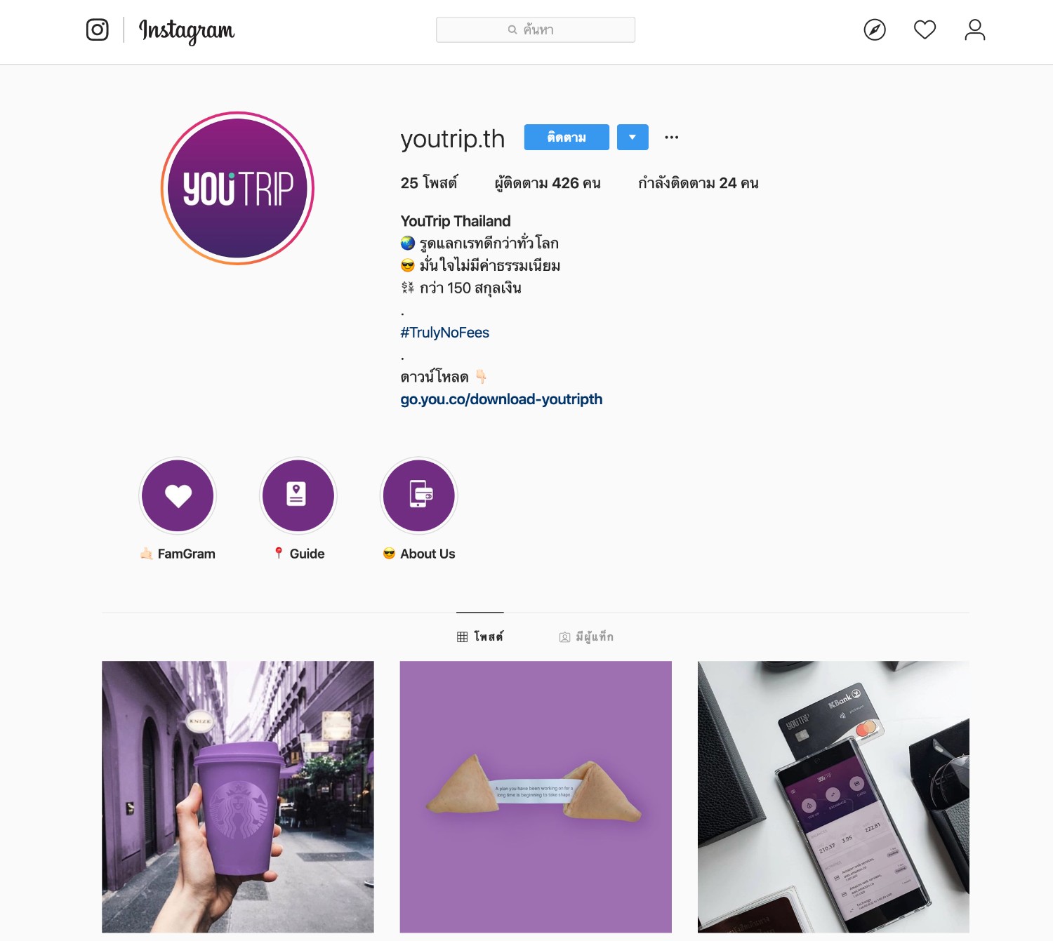 https://www.instagram.com/youtrip.th/?hl=th ตอนนี้ยังมีผู้ตามหลักร้อยอยู่ ประมาณ 426 คน
