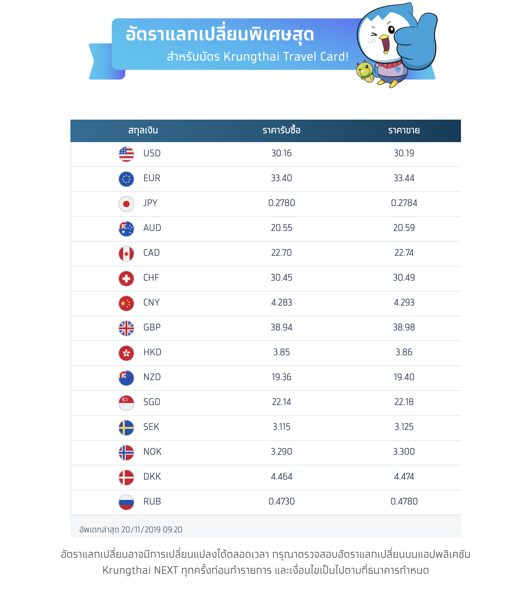 บัตร Krungthai Travel Card โพสต์แจ้งโปรฯ น่าสนใจ ฟรีค่าธรรมเนียมแรกเข้า (ปกติต้องเสียสองร้อยบาท) ภายใน 31 มกราคม 2563 กับการแลกเงินเก็บไว้ก่อนได้ล่วงหน้า ในกลุ่ม 14 สกุลเงินสำคัญๆ ทั่วโลก