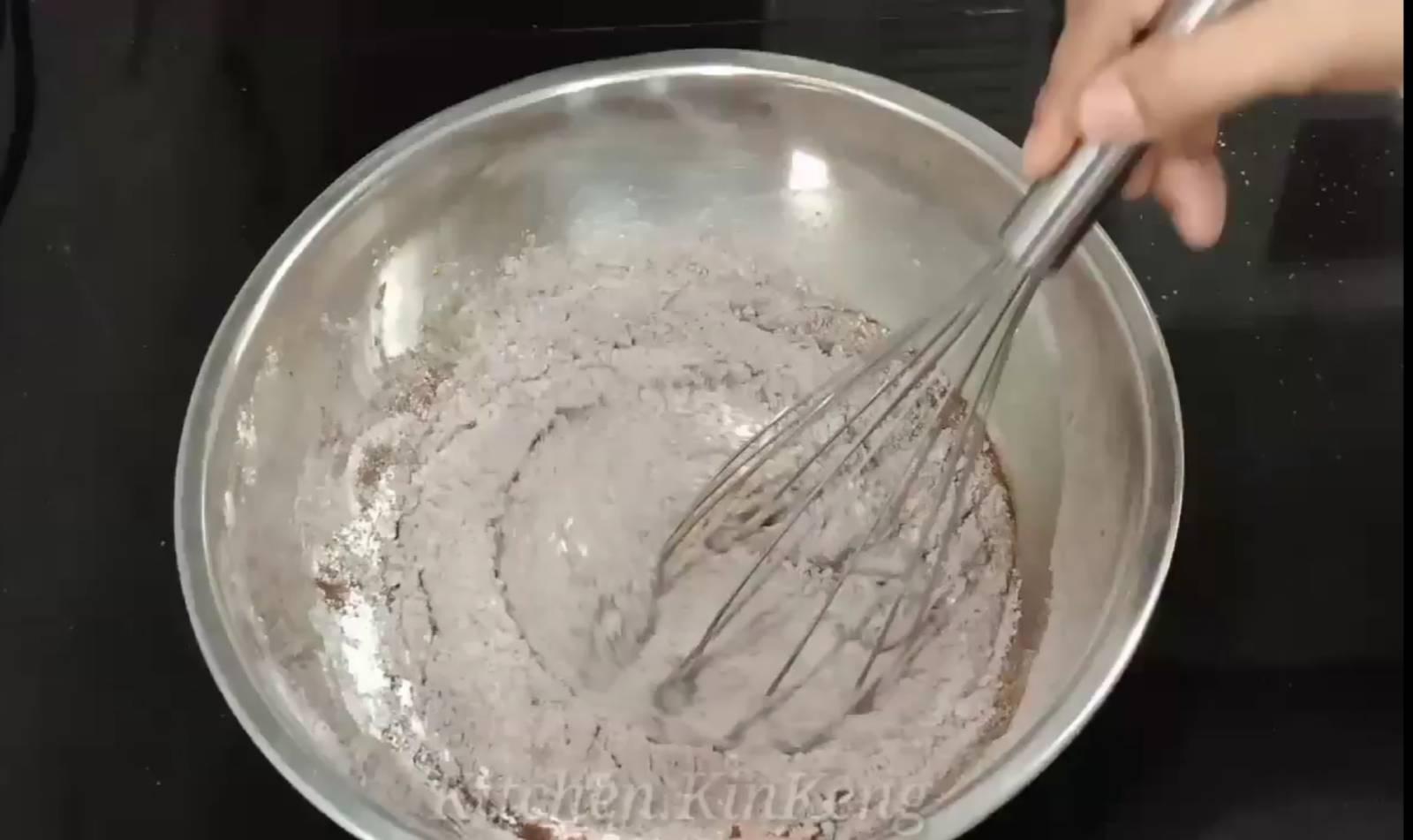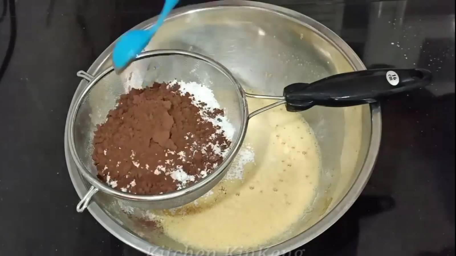 ผงโกโก้ 30 กรัม ร่อนทั้งหมดลงในชามผสม