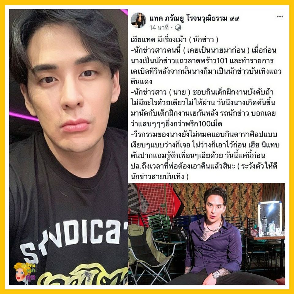 ถึงเวลาต้องเอาคืน!! งานนี้ขาเผือกตาลุกวาว อยู่ ๆ #แทคภรัณยู ออกมาแฉนักข่าวบันเทิงรายหนึ่ง ชอบกินเด็กฝึกงาน
