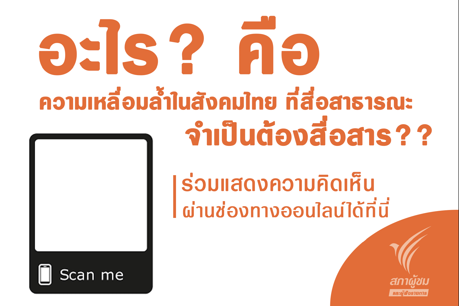 ชวนทุกคนร่วมแสดงความคิดเห็นหัวข้อ "อะไรคือความเหลื่อมล้ำในสังคมไทย ที่สื่อสาธารณะจำเป็นต้องสื่อสาร"