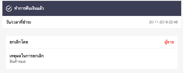แล้วผมก็ไปทำอะไรของผมไปสักพักก็ได้รับ SMS จาก Shopee ว่าจะคืนเงิน ผมก็เลยเข้าไปดูสรุปผู้ขายยกเลิก