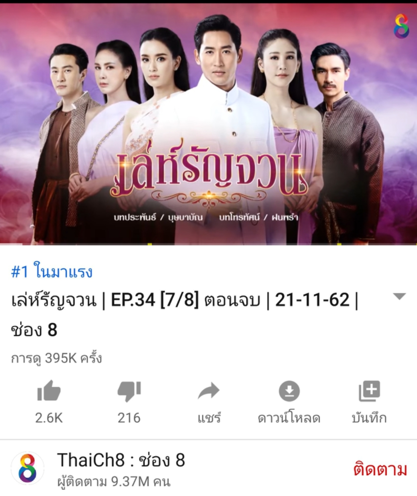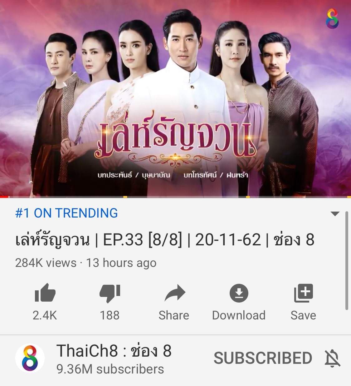 แรงมากค่ะแม่ๆ เล่ห์รัญจวน อันดับ 1 มาแรง Youtube 3 คลิป 3 วันซ้อน ละครช่อง 8 กำลังกลับมาฮิตอีกครั้ง