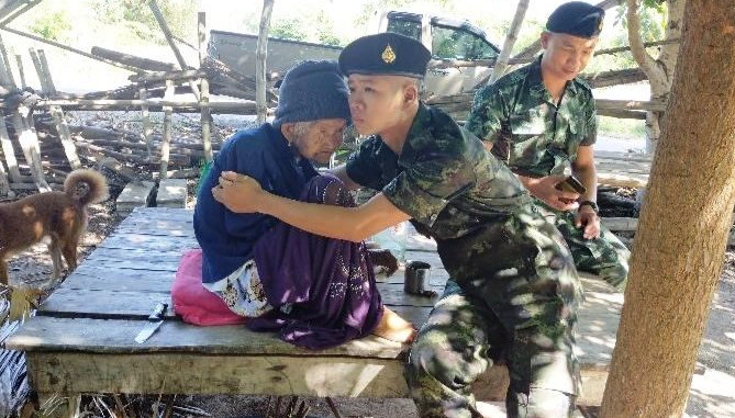 ทหารใหม่เยี่ยมบ้าน สุดห่วงยายวัย 98 ต้องอยู่ลำพัง เหลามะพร้าวขายยังชีพ
