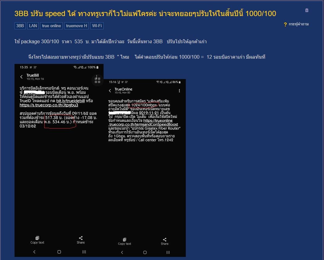 กระทู้บิน "3BB ปรับ speed ได้ ทางทรูเราก็ไวไม่แพ้ใครค่ะ น่าจะทยอยๆปรับให้ในสิ้นปีนี้ 1000/100"