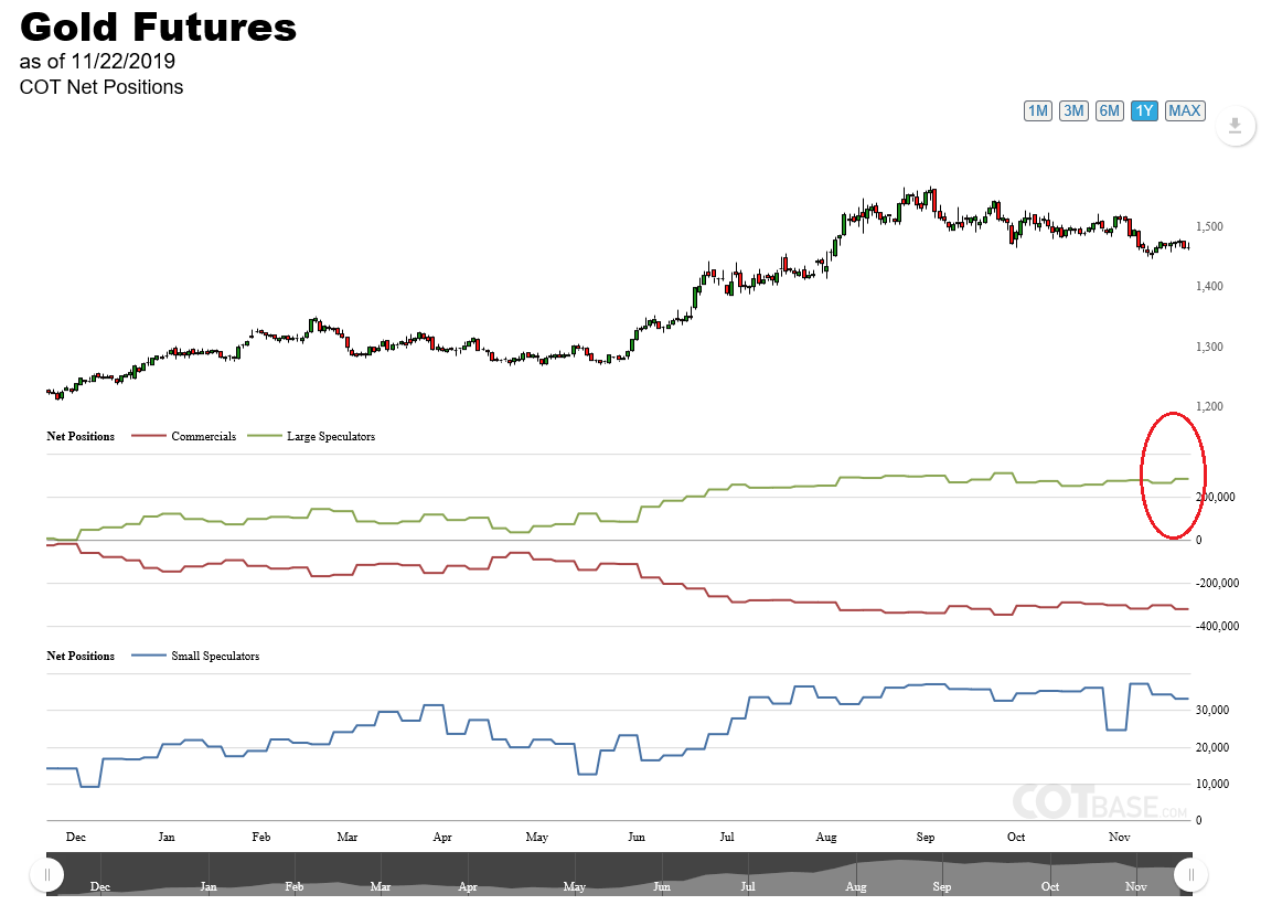 ฐานะสุทธิทองคำของนักลงทุนรายใหญ่ CFTC สหรัฐอเมริกา (ประจำสัปดาห์) 22/11/62
