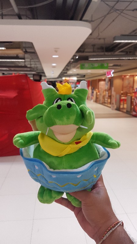 พึ่งพาลูกไปกิน บาร์บีก้อนมา อ้อเล่นเกมผ่านแอพได้ของรางวัลด้วยนะ เกือบไม่ได้แล้วเพราะทานเสร็จก็เช็คบิลเดินออกมา สายตาก็ไปปะทะกับใบแปะหน้าร้าน ก็เลยเดินย้อยกลับเข้าไปในร้านเพื่อสอบถาม สุดท้ายก็ได้เล่นเกมจนได้ของรางวัลที่อยากได้ คือเจ้านี้