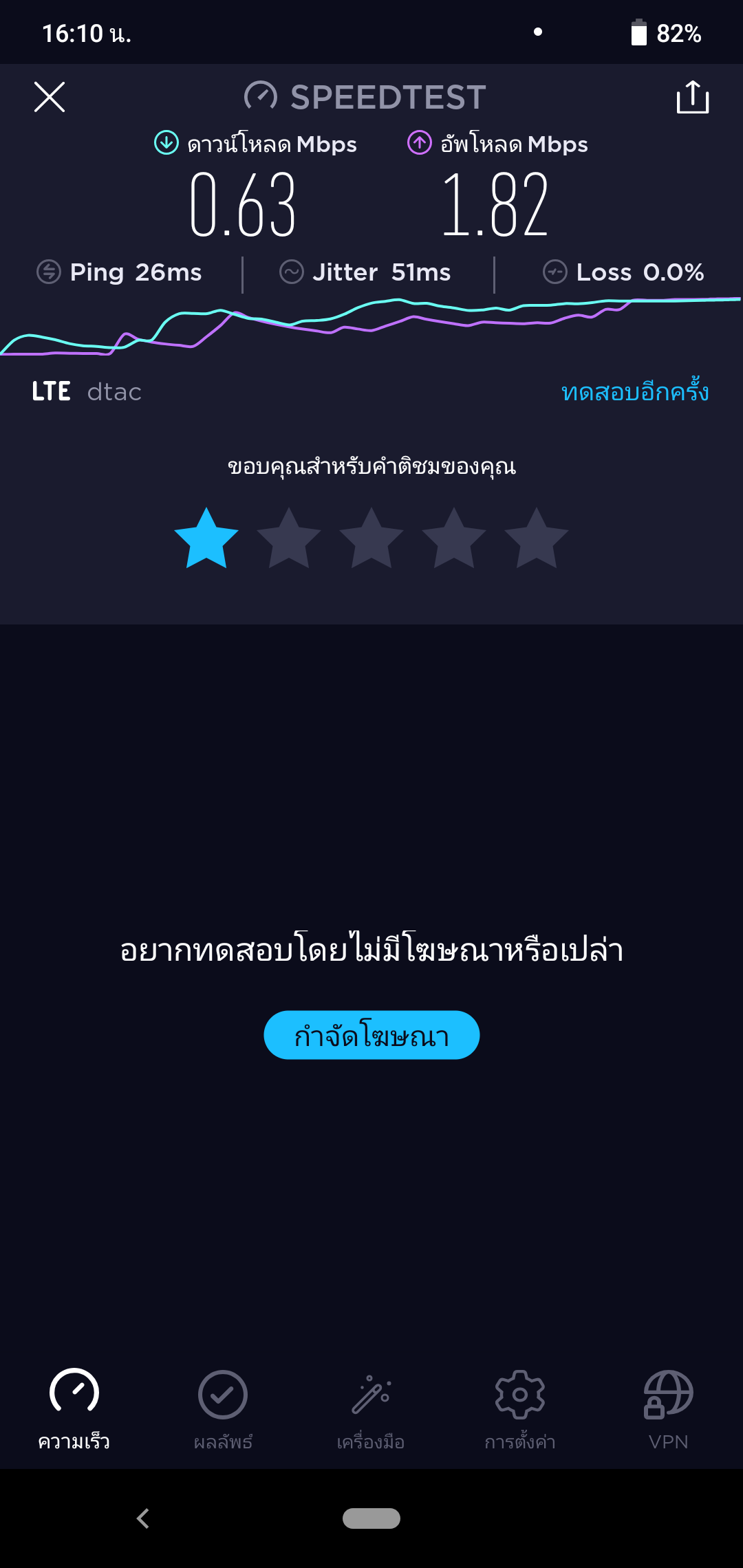 ปล. ขับรถไปนอกพื้นที่ ก็จับสัญญาณได้ปกติ 40-50Mbps กลับมาบ้านตัวเองยังเน่าอยู่