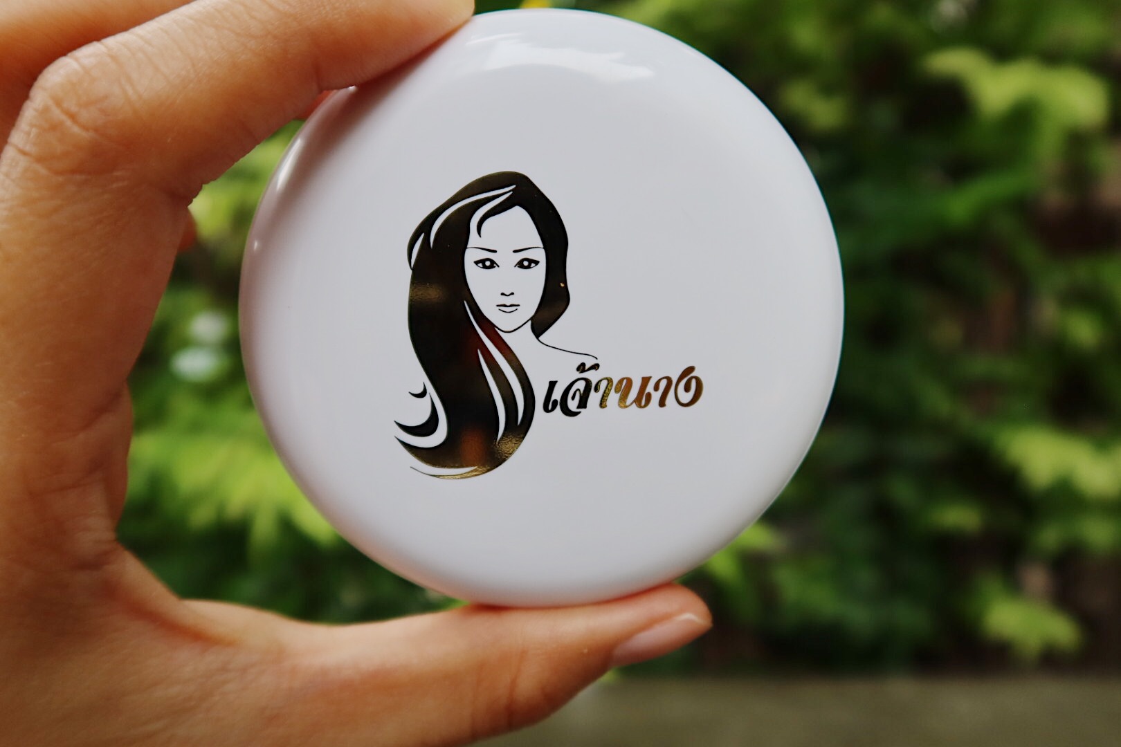 ดีไซน์ความเป็นเอกลักษณ์แบรนด์เขาคือ รูปผู้หญิงผมยาว ใช้ฟ้อนท์ไทย