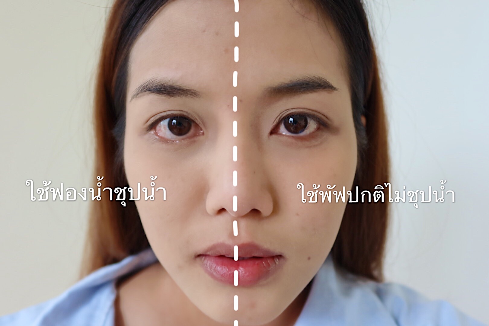 ปกปิดได้เหมือนกันแต่ก็ไม่กริบมากเท่าข้างที่ใช้น้ำอันนี้แล้วแต่ความชอบของแต่ละคนเลยว่าจะใช้แบบไหนนะคะ แต่โซจะเน้นงานกลบสิวเนียนๆโซจะใช้ฟองน้ำชุบน้ำหมาดๆและกดๆแทปๆผิวเพื่อความกริบของงานผิวค่ะ