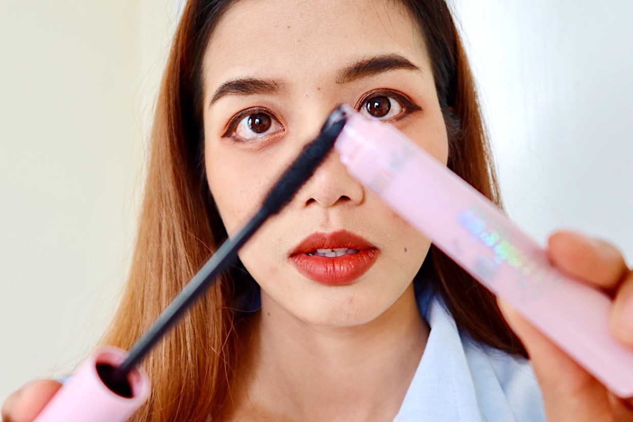 ข้างที่ยังไม่ได้ปัดมาสคาร่า คือขนตาแทบมองไม่เห็นเลย