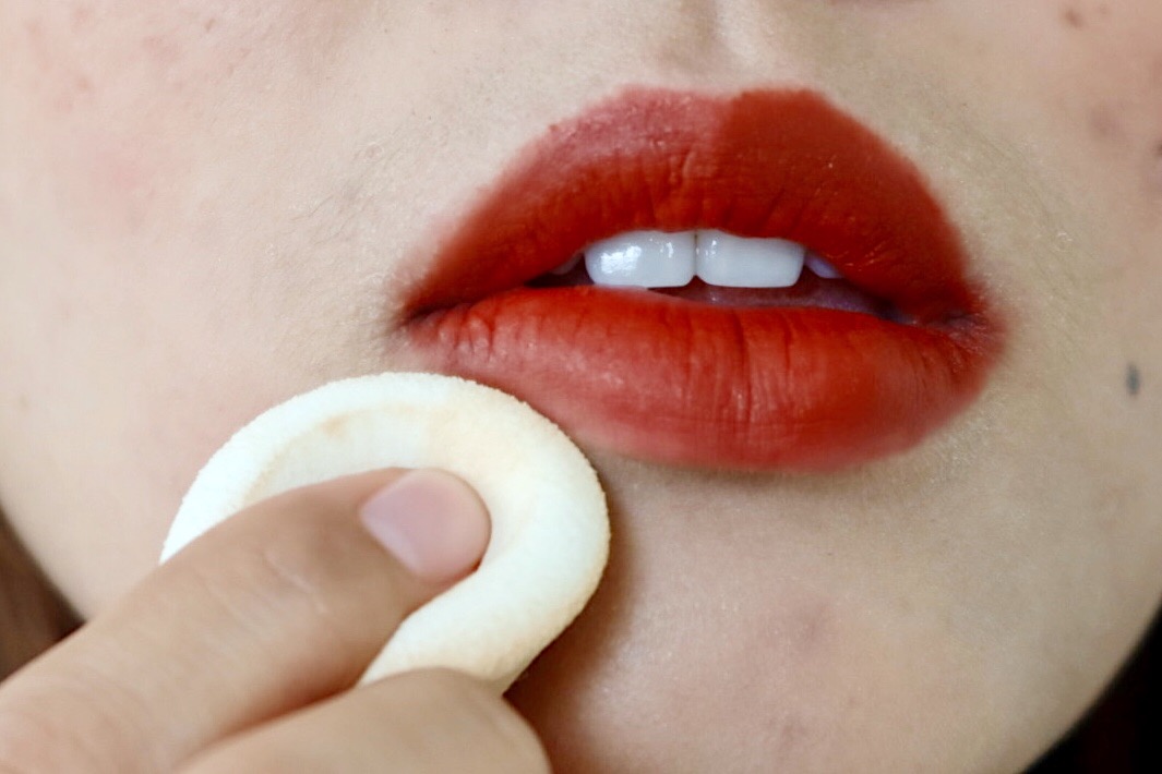 หลังจากนั้นโซจะใช้ฟองน้ำชุปน้ำแตะแป้งพัฟเจ้านางแล้วกดๆแทปๆผิวทั้งหมดเพื่อกลบรอยสิวและบิวท์ให้หน้าเนียนกริบตรงนี้คือเทคนิค ทุกคนต้องเกลี่ยสีลิปให้เนียนก่อนนะคะถึงจะลงแป้งได้แล้วจึงค่อยแทปๆแป้งลงไปจนกว่าจะกลบรอยแดงทั้งหมดให้มิด