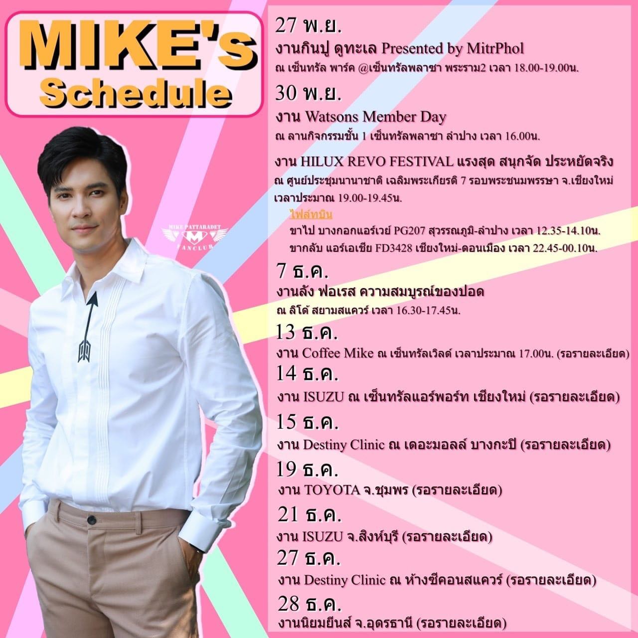 อัพเดทตารางงาน ไมค์ ภัทรเดช จร้า
