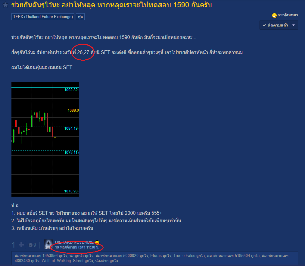 เคยโพสต์ไว้ว่า วันที่ 26 , 27 วันขายทำกำไรเอาไว้เมื่อต้นสัปดาห์ก่อน แต่พอมันมาถึง ก็ไม่อยากขาย อยากถือต่อ หรือถ้า TFEX ก็อยากถือ L ยาวๆต่อไปอีก