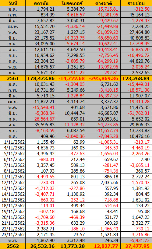 Sinthorn Summary 25/11/2562 : ต่างชาติซื้อสุทธิ 1,521.84 ลบ.
