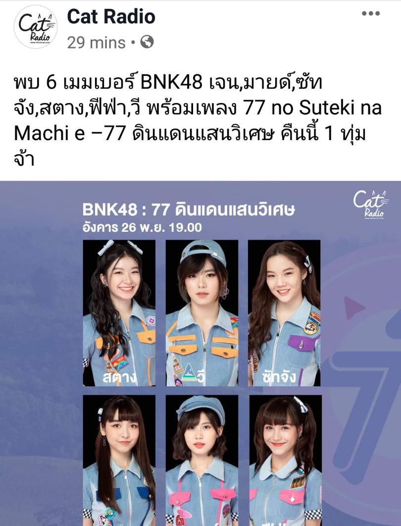 Cr. Instagram : BNK48 รูปโปสเตอร์โปรโมทล่าสุด จาก Cat Radio TV Cr. Twitter : @ThisisCatRadio มาติดตามเรื่องราวของรายการวิทยุเล็กๆรายการหนึ่ง ผ่านรูปแบบซิตคอมอารมณ์ด