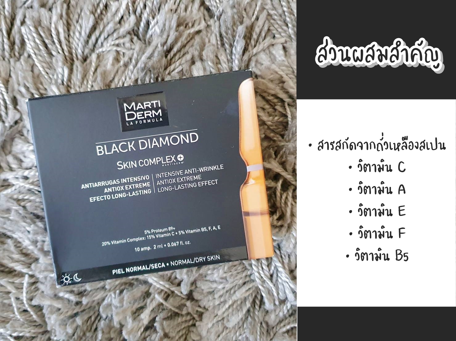 โดยทางแบรนด์เค้าเคลมว่า MARTIDERM Black Diamond Skin Complex
