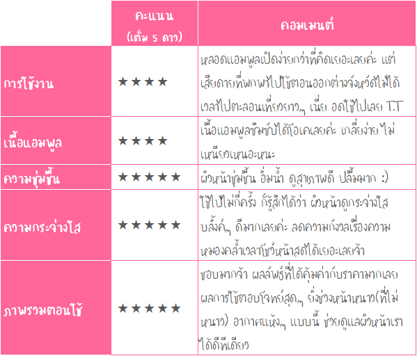 ตารางสรุปคะแนนไว้ให้นะคะ จะได้อ่านง่ายขึ้น
