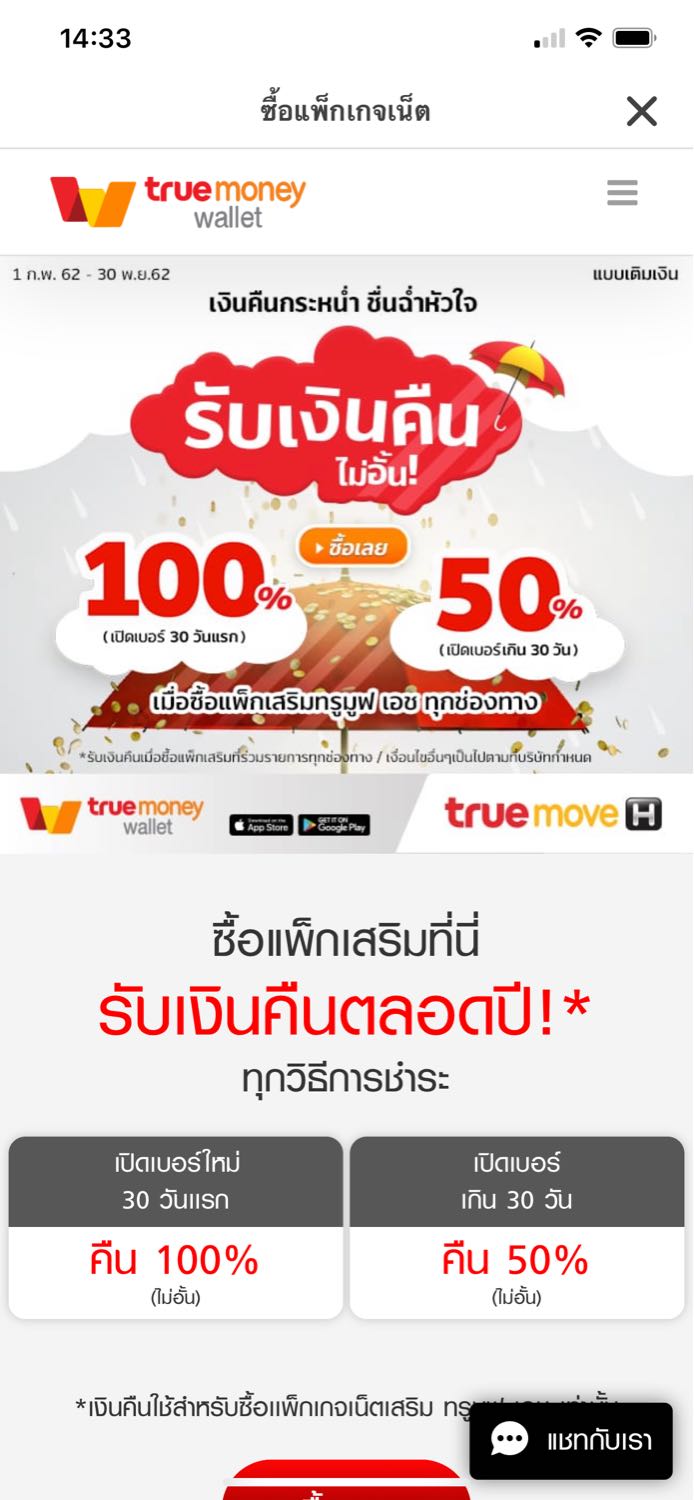 สมัครโปรเสริมทรู แต่ไม่ได้เงินคืน