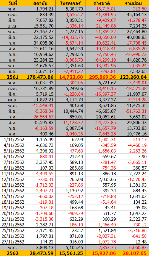 Sinthorn Summary 27/11/2562 : ต่างชาติขายสุทธิ -1,072.78 ลบ.