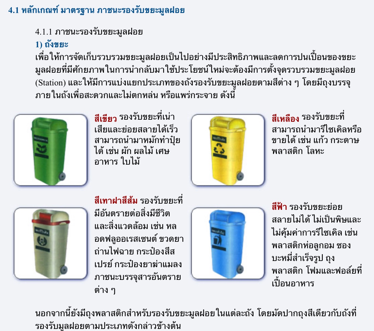 สำหรับการประเภทการทิ้งขยะ อ้างอิงจากกรมควบคุมมลพิษ พบว่าแต่ละถังขยะจะมีถุงสำหรับรองรับขยะอยู่แล้ว การทิ้งขอแนะนำให้ทิ้งขยะอาหารแบบแห้งมากกว่าครับ ส่วนของเหลวพวกน้ำซุปน้ำแกงของเปียกต่างๆ ควรจัดการกำจัดในครัวเรือนให้เรียบร้อยก่อน บางบ้านอาจทำปุ๋ยอินทรีย์ หรือใช้ถังกำจัดเศษอาหารสำเร็จรูป เมื่อเหลือขยะเศษอาหารแบบแห้งสามารถทิ้งลงถังที่มีถุงบรรจุอยู่แล้วได้เลย เพื่อให้ทางหน่วยงานที่รับผิดชอบนำไปกำจัดหรือทำปุ๋ยอินทรีย์ต่อได้เลยทันทีครับ