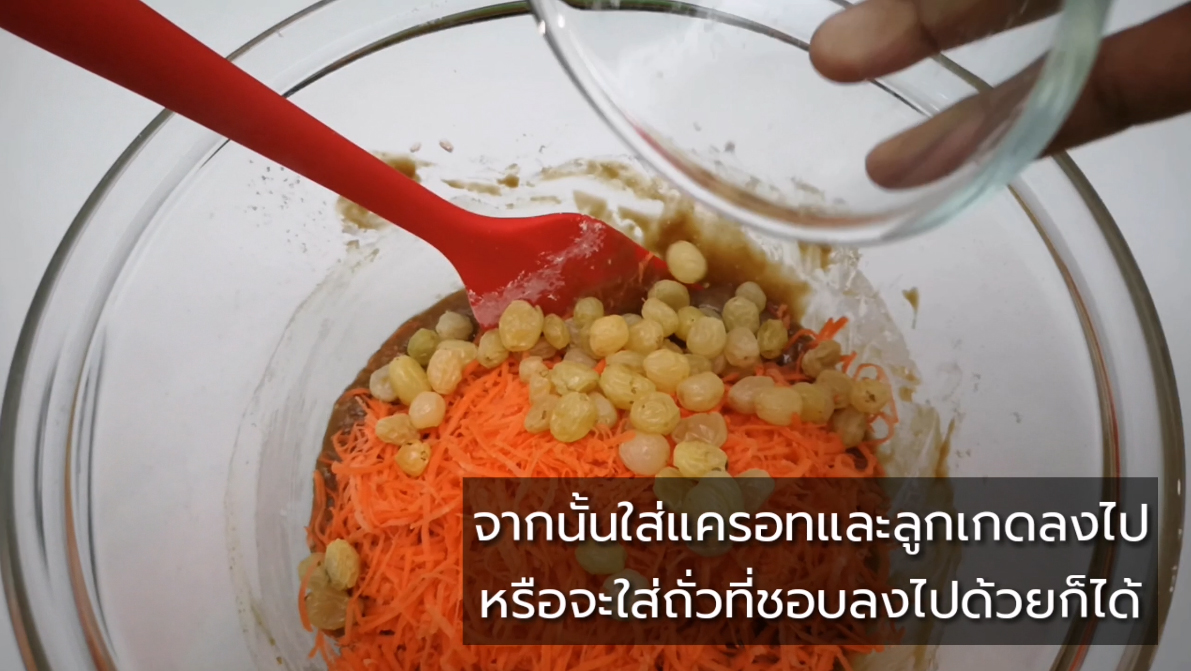 ใส่แครอท ลูกเกด หรือถั่วตามชอบลงไป