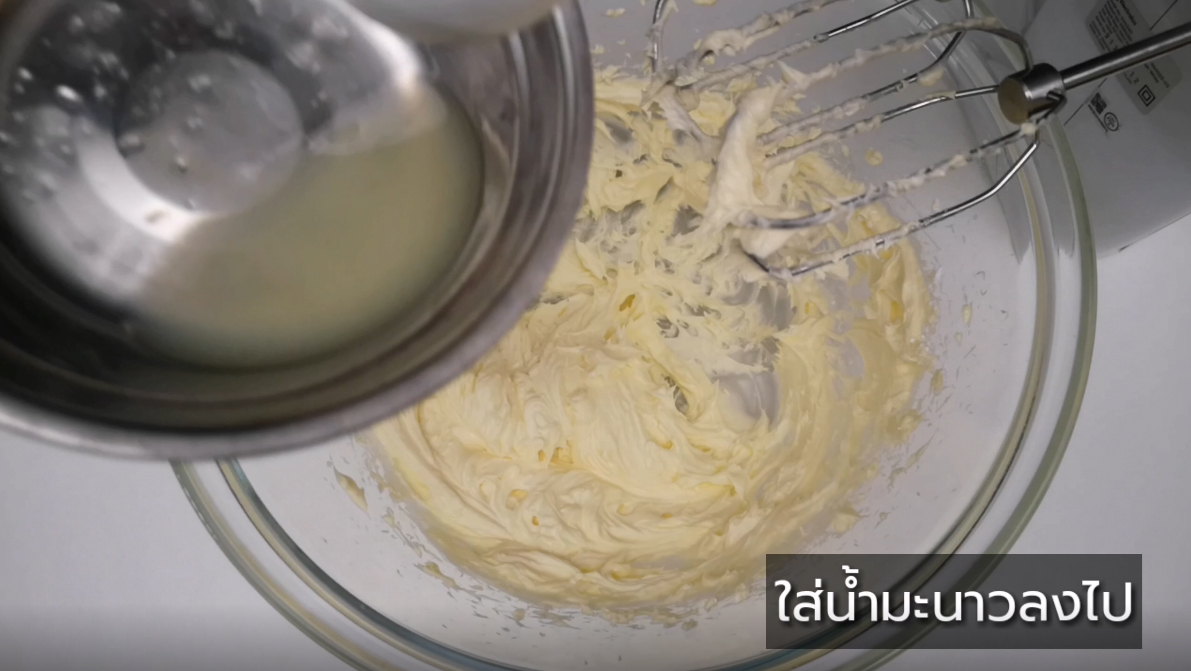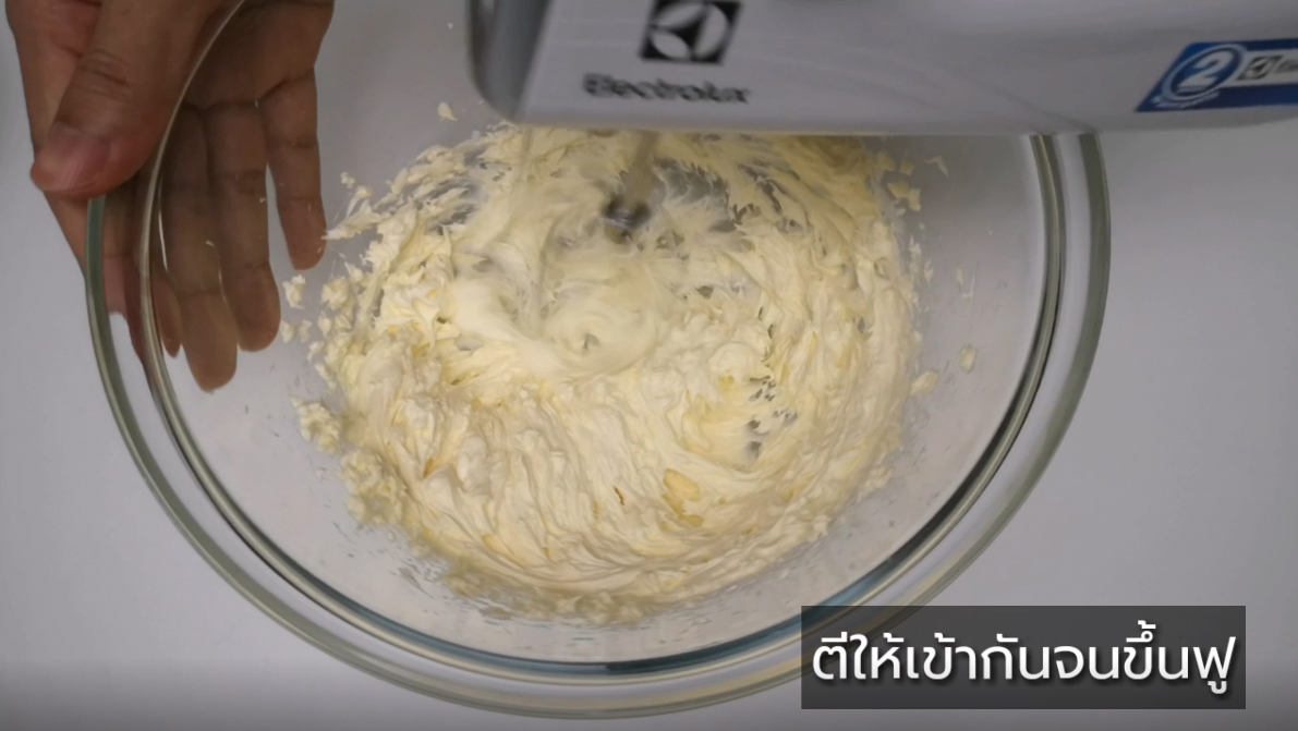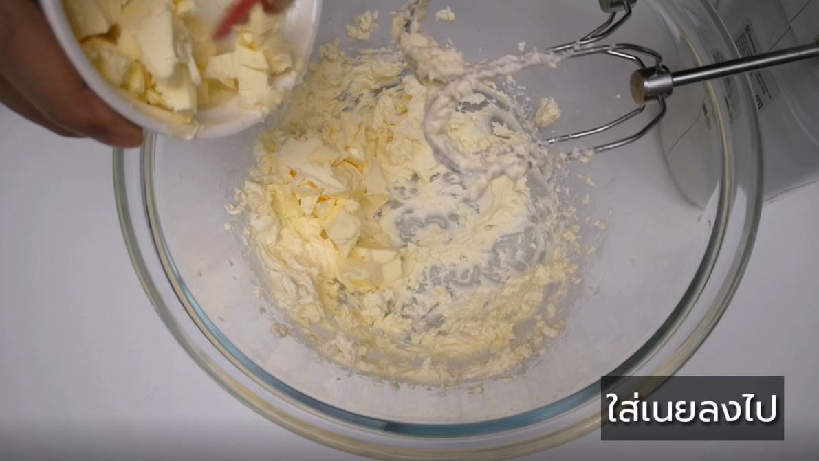 ใส่เนยลงไป ตีให้ฟู