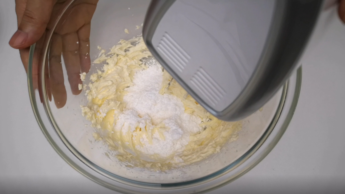 ใส่น้ำตาลไอซิ่งลงไปตีให้เข้ากัน