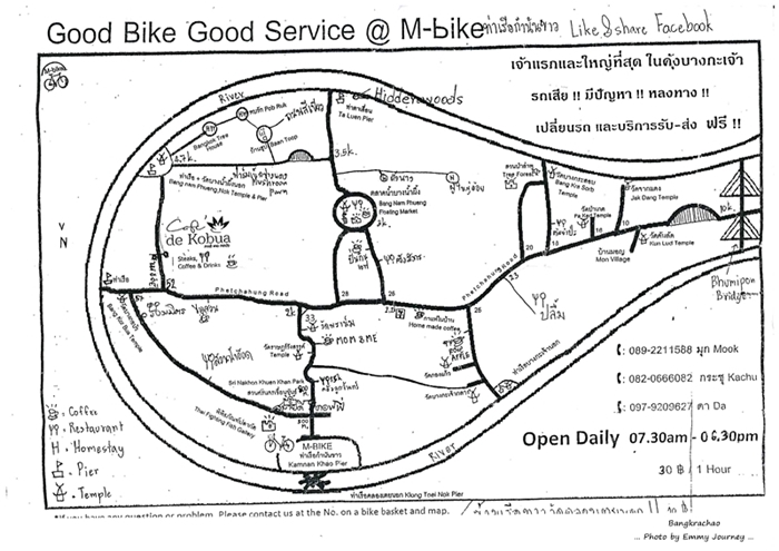 ร้านเช่าจักรยานก็จะให้แผนที่มาแบบนี้ด้วยจ้า