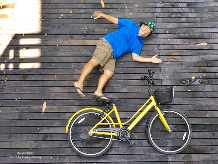 ปั่นไปเรื่อยๆ จนถึง หอดูนก จุดยอดฮิตที่คนมาถ่ายรูปโพสท่าแบบนี้กัน