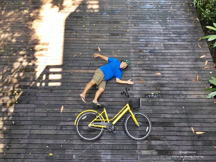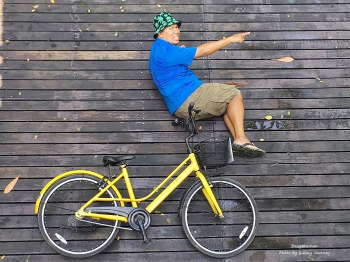 นั่งพักเหนือยแล้วก็ปั่นกลับไปที่เดิมเพื่อคืนจักรยานจ้า ปล. หากไปอีกรอบหน้าจะเช่ามอไซต์ขี่เที่ยวดีกว่า ที่เที่ยวแต่ละที่โคตรไกล ปั่นจนเหนื่อย เสียดายเราไปวันธรรมดา ตลาดบางน้ำผึ้งไม่เปิด เลยอดเดินตลาดเลย