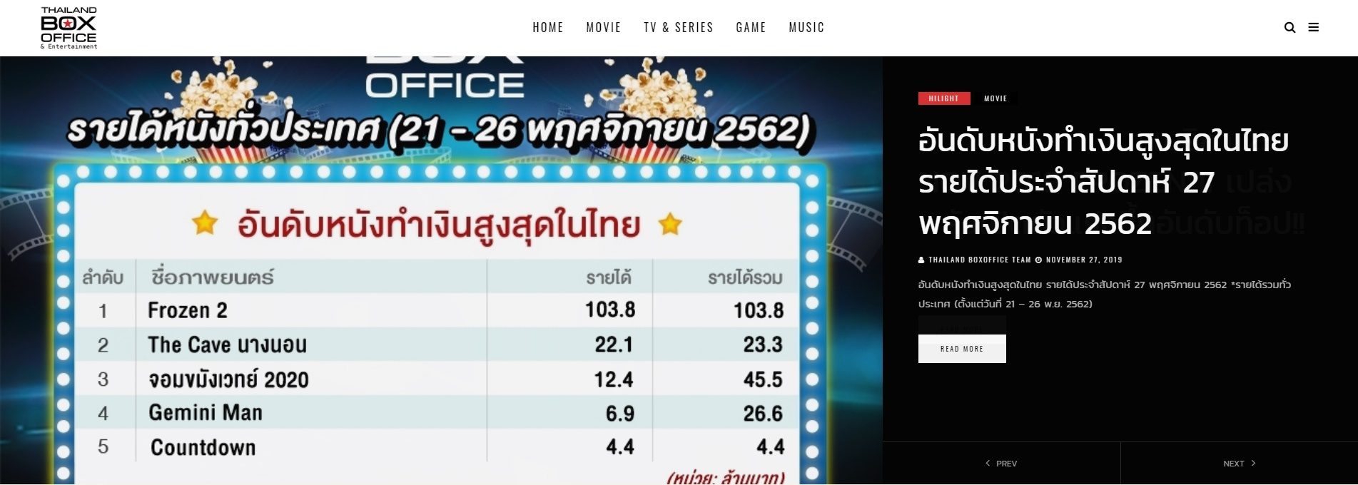 ข้อมูลรายได้จากโรงภาพยนตร์เมเจอร์ซีนีเพล็กซ์ ทุกสาขาทั่วประเทศ และรายได้ประมาณการณ์จากโรงภาพยนตร์อื่นๆ ทุกจังหวัดทั่วประเทศ Credit : https://www.thailandboxoffice.com