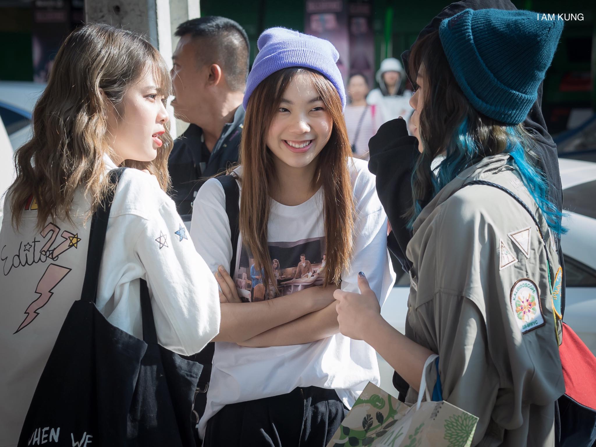 ป่าน : ฮันแน่ ! สองหนุ่มมายืนทำอะไรกันตรงนี้เอ่ย จีบกันอยู่เหรอ ?