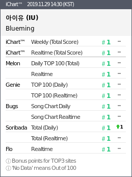 เพลง Blueming จอง IU ยังแรงดีอยู่ หลังจากออกมาตั้งแต่วันที่ 18 พย.เกือบสองสัปดาห์ก่อน