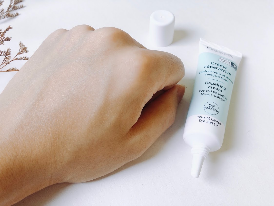 -เนื้อครีมสีขาวค่อนข้างเข้มข้น พอทาไปแล้วเกลี่ยง่ายและให้ความชุ่มชื้นดี หลังจากทาเนื้อครีมซึมเข้าสู่ผิวแต่มีความฉ่ำนิดๆตรงบริเวณที่ทา สังเกตได้จากรูปค่ะ