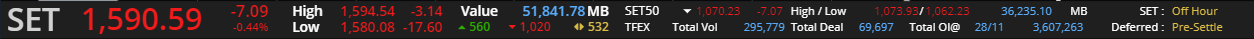 SET วันจันทร์ลงต่อ... 1580 น่าจะหลุดลงไปทดสอบจุดต่ำใหม่