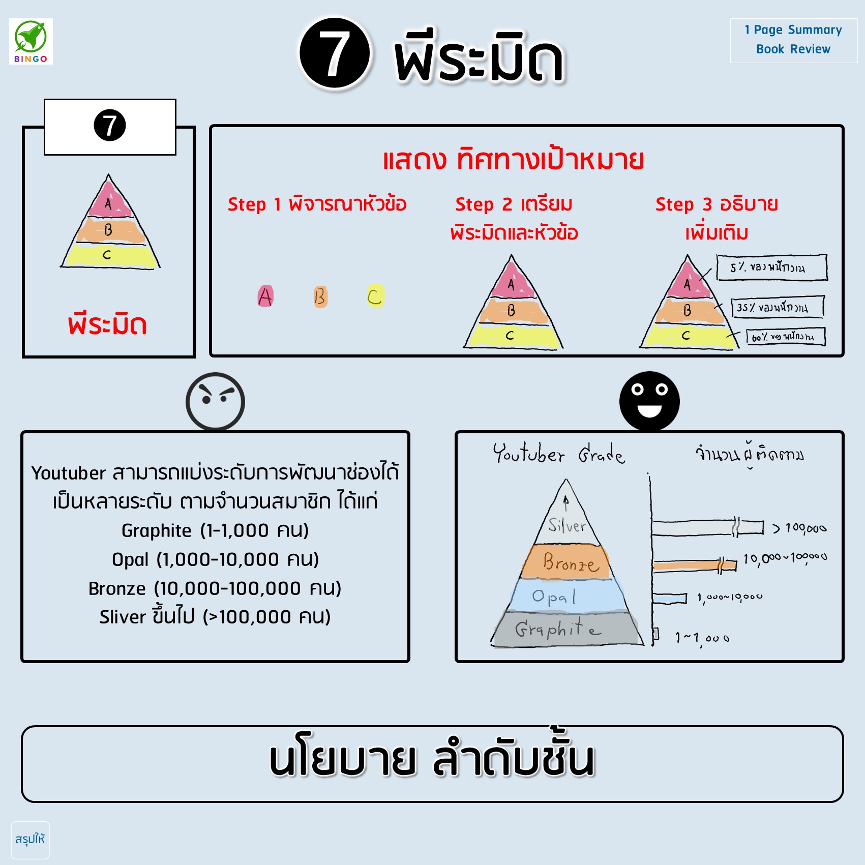 และแบบสุดท้าย พีระมิด จะช่วยอธิบายสิ่งที่เป็นลำดับชั้นได้ดีที่สุด