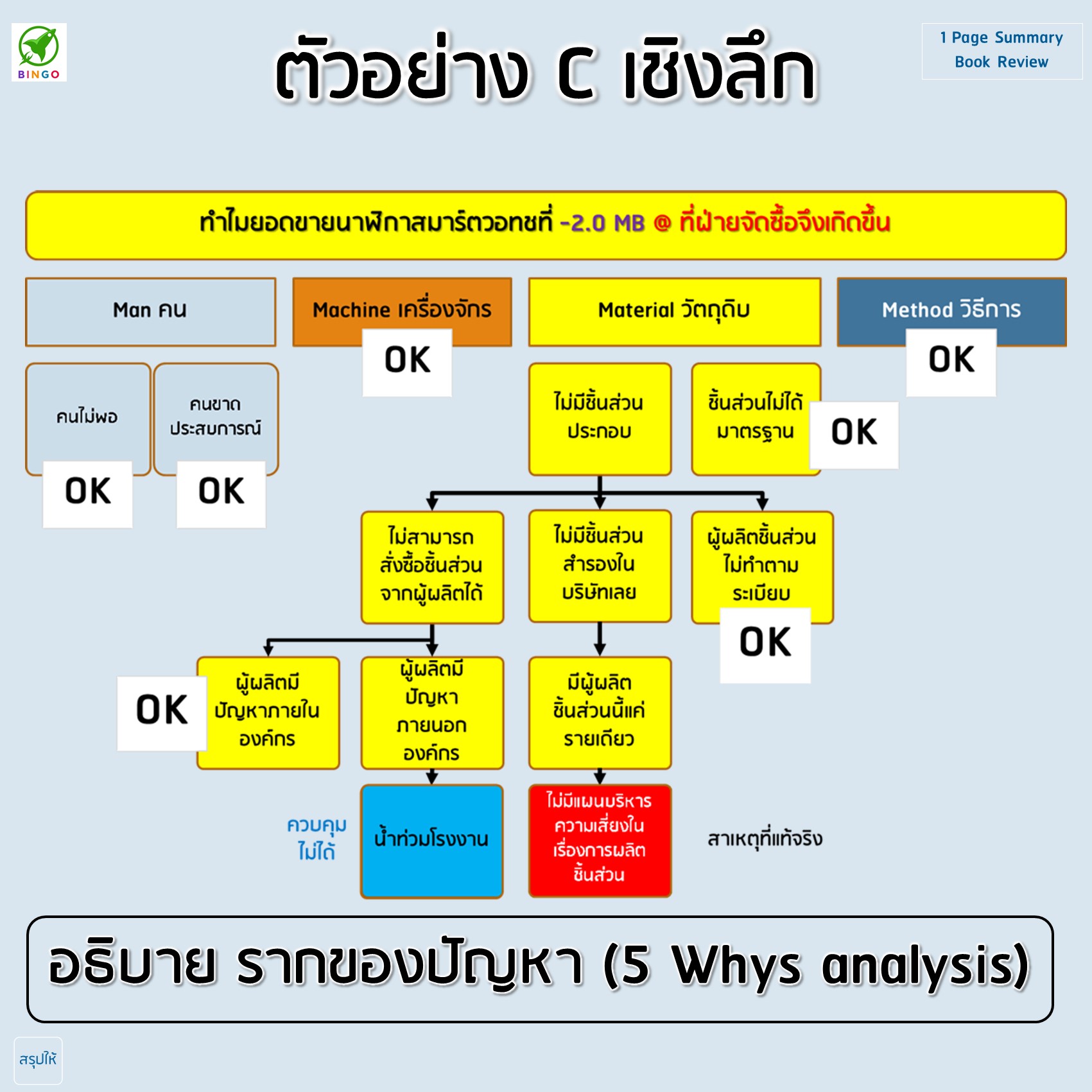 แผนภาพเชิงลึกเหมาะสำหรับการสิ่งที่เป็นเหตุเป็นผล สาเหตุที่แท้จริง (ท่านไหนทำงานบริษัทญี่ปุ่นน่าจะคุ้นชินกับ 5 Whys Analysis)