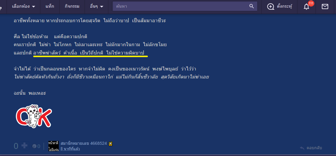 ทิดขวัญกล่าวว่า "อาชีพ ฆ่าสัตว์ ไม่บาป"