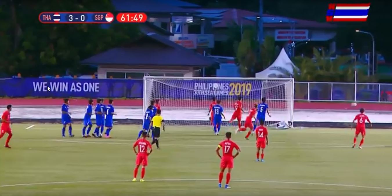 คนพากษ์บอก ฟรีคิกลูกนี้ต้องเล่น 2 จังวะนะครับ พูดเสร็จ นักเตะซัดตูมที่เดียวข้ามคานไปเลย คนพากษ์ก็เหวอไปเหมือนกัน ทำเงียบไปเลย ไม่พูดถึงอีกเลย ผมยังคาใจอยู่เนี่ย !?